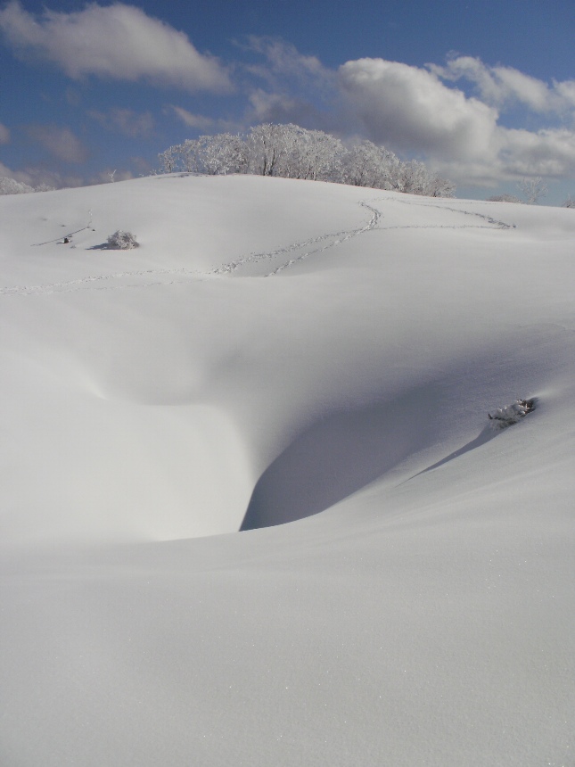 折角なのでお父さんブナに挨拶してから、テーブルランドに向かった。一人分のトレースがテーブルランドに向かっていた。なつかしい名前です。