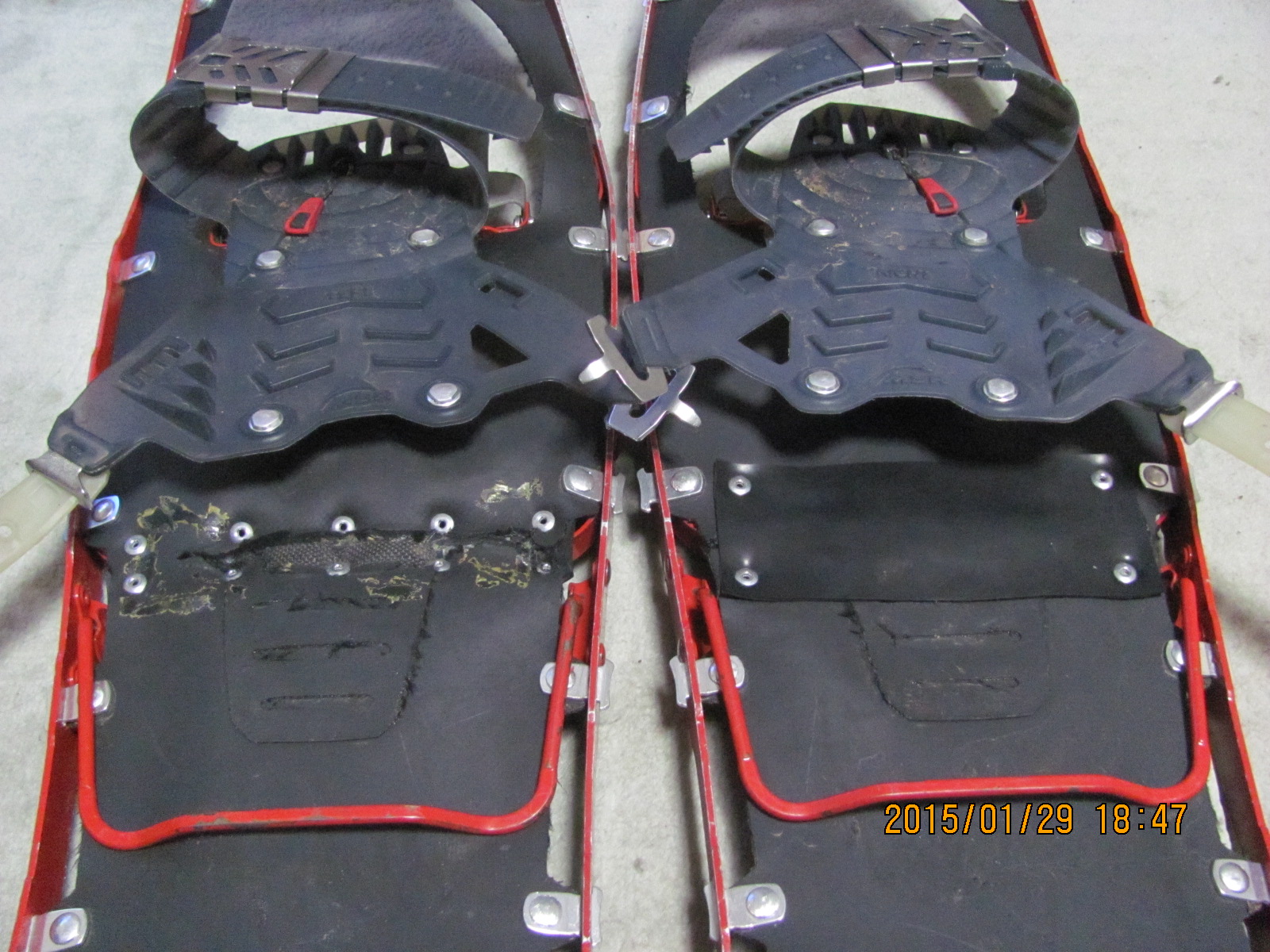 靴底がガタガタになった原因はやっぱりデッキが破れたままだったからでしょうか。グーの壊れたスノーシューのデッキは、かかとの部分に最初から切れ目が入っていて、