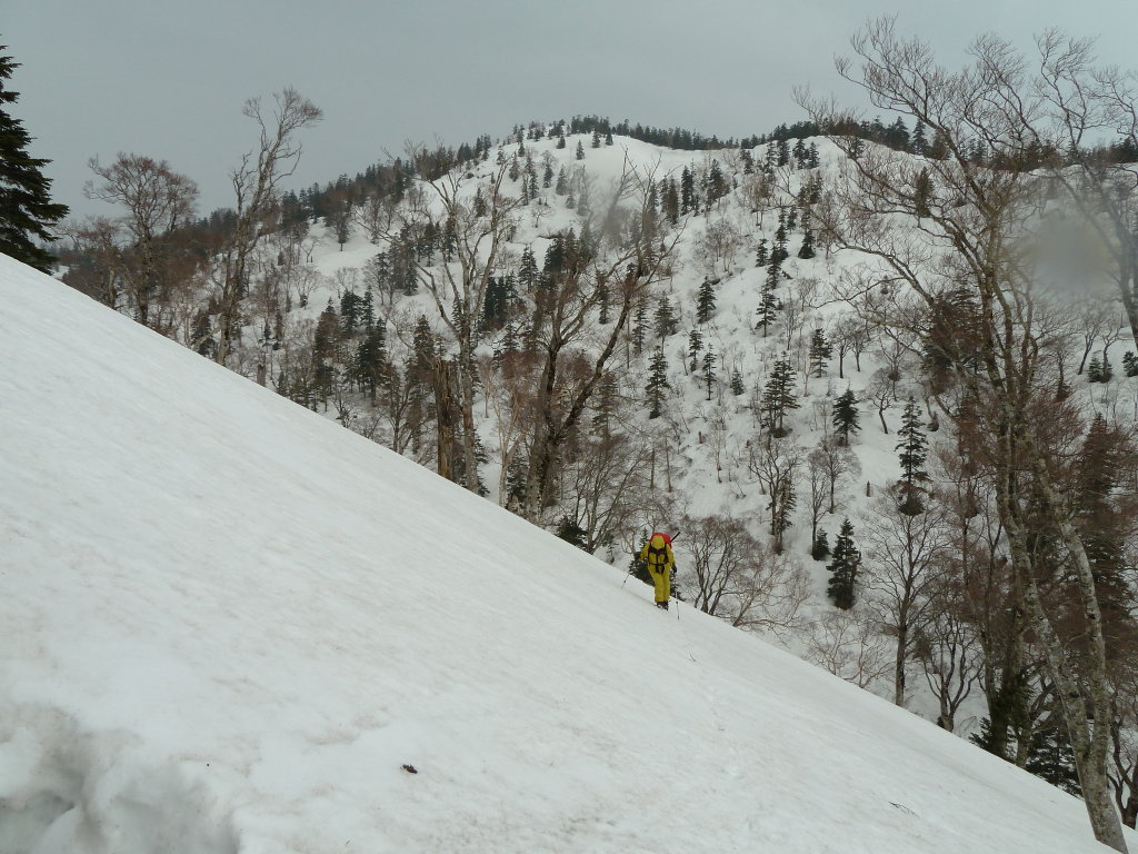 ここは大瀬戸谷まで一気に下りて、Ca1850mピークへ直登する尾根に乗るのが効率的である。