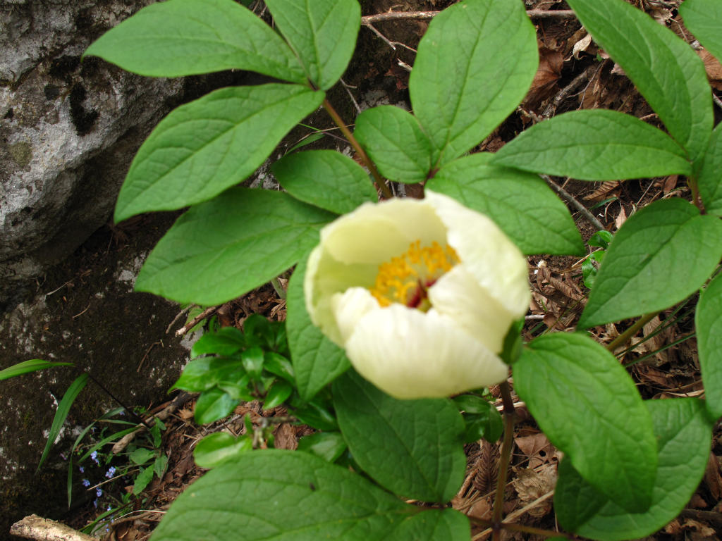 いつもの青川駐車場に到着。青川をつめていく。今日は水量が多く、長靴を履いていても場所を選ばないと徒渡できない。以前に比べ青川の川底が深くなっており、これからの時期は登山靴では厳しいかもしれない。広河原をすぎると下り藤の丘が見えてくる。治田鉱山が華やかかりしころ女郎屋があった場所だ。下り藤をすぎた隋道下は今や水流で大きく掘れてしまい隋道につながる道があったことが想像できない状態になっている。銚子谷の出会いから大きく口を開けた大通洞坑を見送り山光谷に入る。大滝を右手に見ながら歩くと左岸に鉱夫の墓がある。今日は椿の花が活けてある。この付近の右岸に中尾が下りてきている。赤テープの場所から取り付く。
