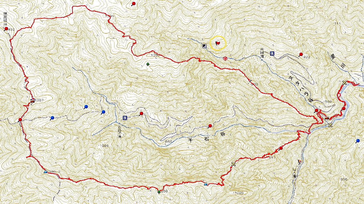 わたしは寄り道しすぎたので、千石山の三角点まで行った後、赤クラ滝谷と