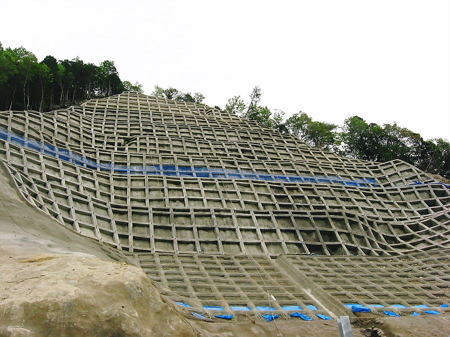 護岸壁はなおってる、一車線は通れるようになって土砂の運び出し中だ。ダンプが頻繁に通るのだろう。