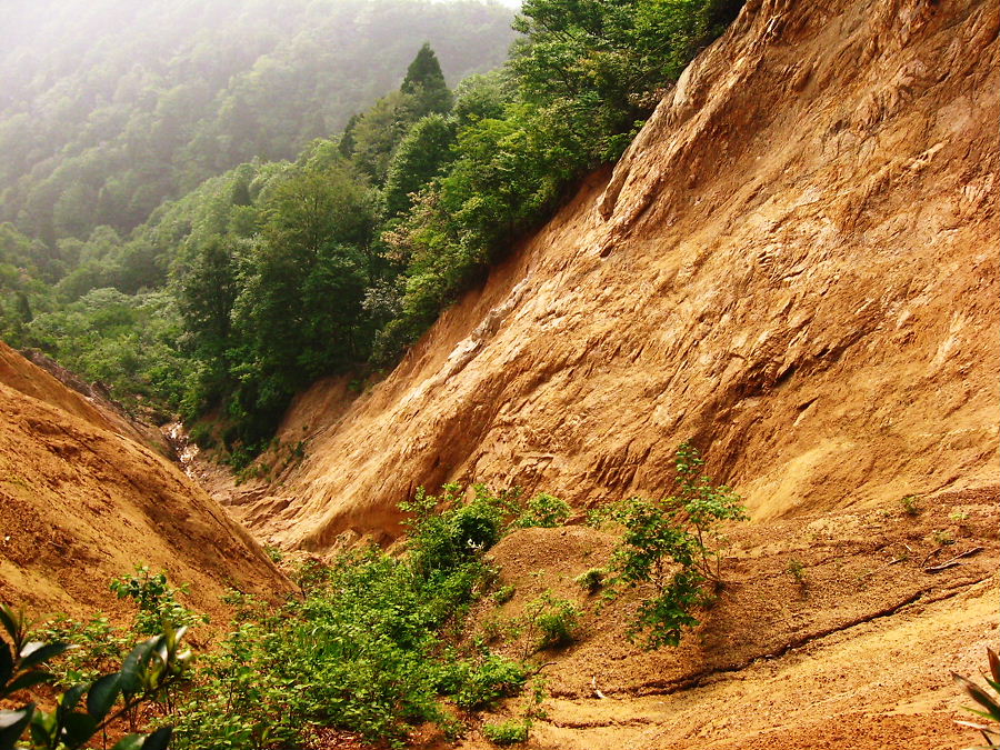 崩壊の所は略奪地形になるのかしら、新しい生々しい崩壊場所だ。