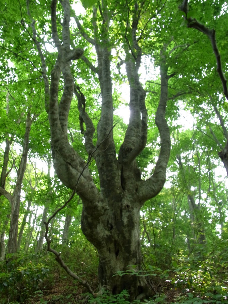 何年か前に拓かれたこのルートもまたブナの尾根である。時折ミズナラの大木が現われるのがこの尾根の特