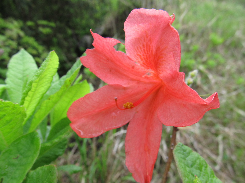 開けた所に出るとこれから向かう三角点峰が見える、曇り空では有るが視界は効き遠い所まで見通せる、台高の稜線も良く見える。レンゲツツジも咲くがこれは植栽かも、石楠花も有ったけど、細葉なのできっと過去に植えられたものなんだろう。