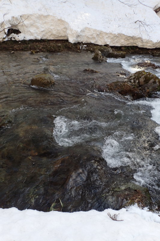 仕方がない。覚悟を決めて一番流れの緩そうなところでスノーシューを履いたまま渡渉した。
