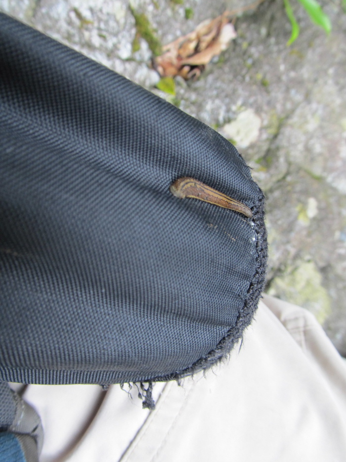 登っていくと岩グラにさえきられた、岩肌には水が染み出している、右手には乾いた岩壁が見えている、登れそうな手がかりは有るのだが私には度胸がない、バンドを左に巻くと徐々に標高が上がって行く、ザックを降ろし小尾根に回り込むが崖!、弱点を見つけて上に抜けるとクラの上に出たようだが未だ上にも有るかもしれない、ここで引き返す事に、が、登ってきたルートが判らない少し焦ったが見つけて慎重に下る、やはり下りは怖いのだ。