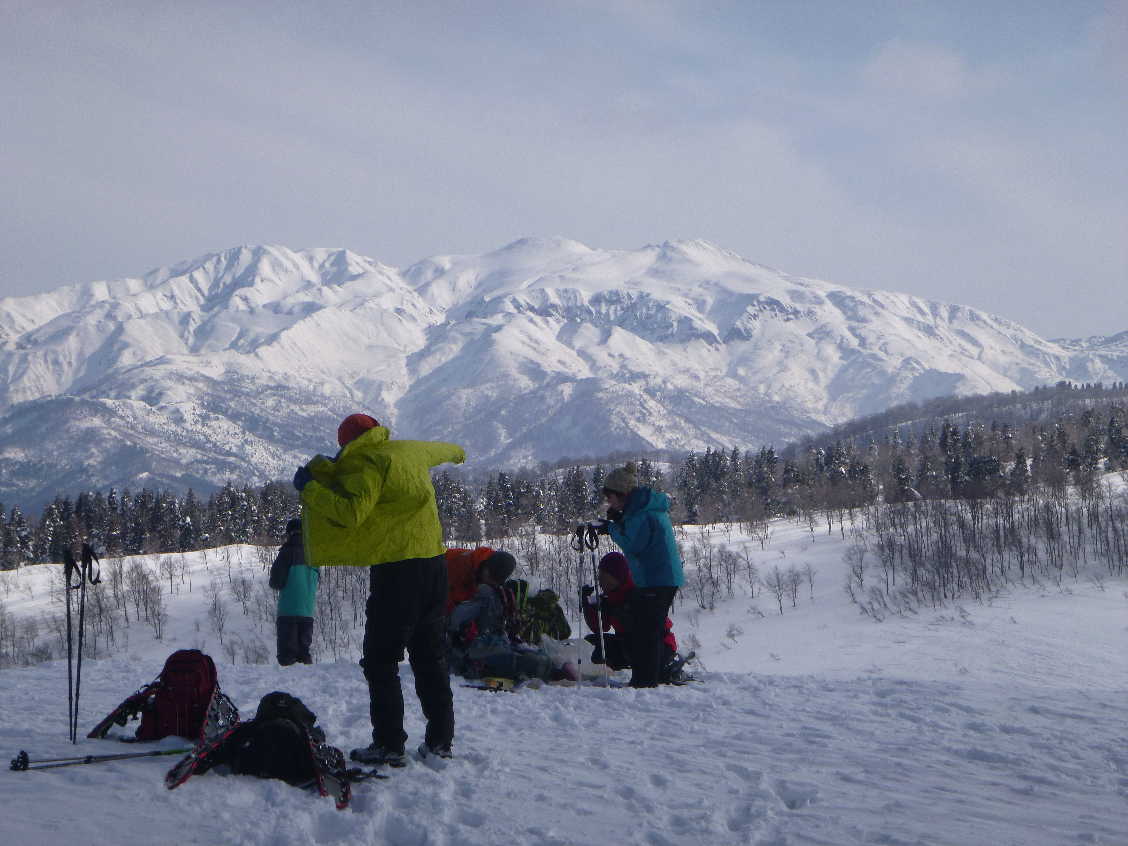 ら大長山へは大きな登り返しがあり、直登コースをスノーシューで登りました(ほとんどの人はアイゼンに履き