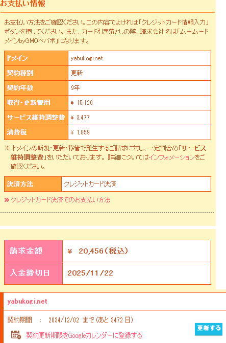 早速 GMOグループ ムーム―ドメインに9年分(最長送金可能期間)